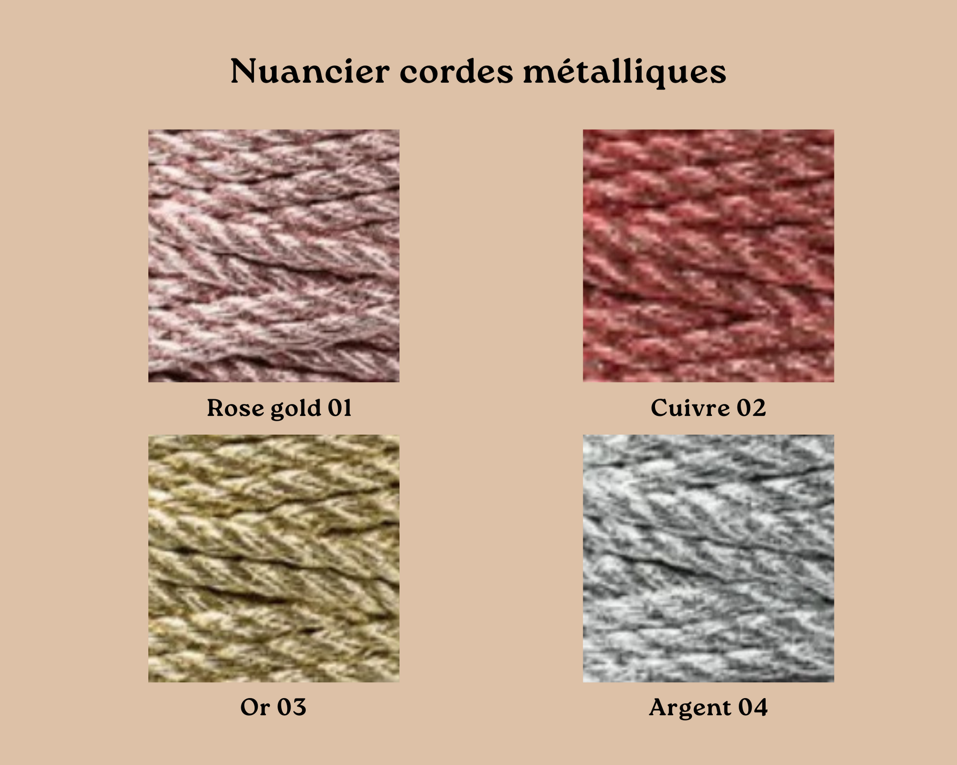 - Corde métallique 81 % coton, 19 % polyester, certification Oeko-Tex Standard 100